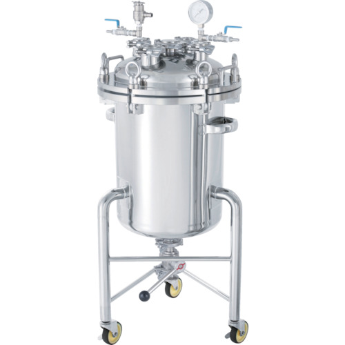 日東金属工業(株) 品番:PCN-O-L-100-UT 日東 SUSフランジオープン加圧容器 脚付 加圧ユニット 100L 特長圧力容器と圧送に必要な部品がセットになった、圧送ユニットです。開口部がフランジタイプの圧力容器です。口径と容器内径が同じストレートタイプでタンクごと移動できるキャスター脚付きです。オープン型の為、洗浄が容易に行えます。ご使用に合わせて、アクセサリーを選定できます。下部