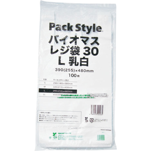 (株)折兼 627399 パックスタイル バイオマスレジ袋30 L 乳白