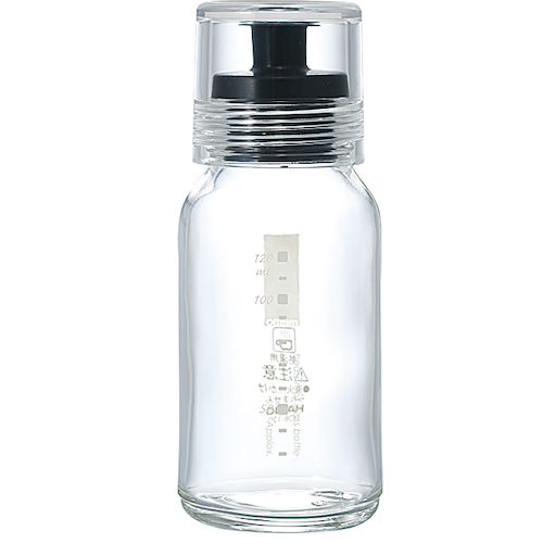 ハリオサイエンス(株) 品番:DBS-120B HARIO ドレッシングボトル スリム 120 特長振って・作って・注いで・保存ができるドレッシングボトルです。振って・作って・注いで・保存もOKです。振って作るドレッシングやタレのオリジナルレシピ付きです。ネジ口密封ボトルなので、振って作って、そのまま保存できます。ボトルは耐熱ガラス製なので、色やにおいがつきにくく、熱湯消毒や食器洗い乾燥機の使
