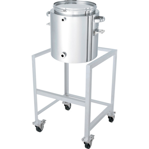 日東金属工業(株) 品番:KTT-CTL-J-ASC-43 日東 片テーパー型ジャケット密閉容器 バンド式 架台付 65L 特長容器と架台が分離できます。温調用のジャケット付きで、スムーズに液体排出できる底傾斜タイプです。作業に合わせて、工具不要で容器と架台の分離・固定ができます。容器を架台から外して洗浄できるので、洗浄時間の短縮になります。容器と架台は丈夫でサビに強いSUS304製です。水を