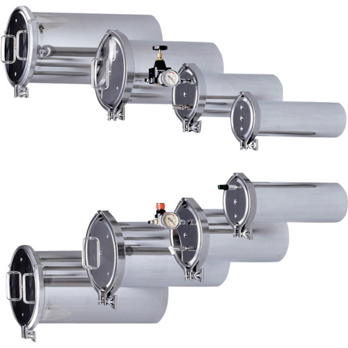 ユニコントロールズ(株) 品番:TA125-316L ユニコントロールズ ステンレス加圧容器 容量3.4L 特長基本的に内容器式で使用するために設計されたタンクです。材料を直接タンクに投入しないので、タンク本体の洗浄が不要です。標準のステンレス製内容器以外にも、市販の容器が直接入れられます。商品はタンクのみです。SUS内容器は、オプションとなっております。用途液体の圧送用に。腐食性の液体を使用