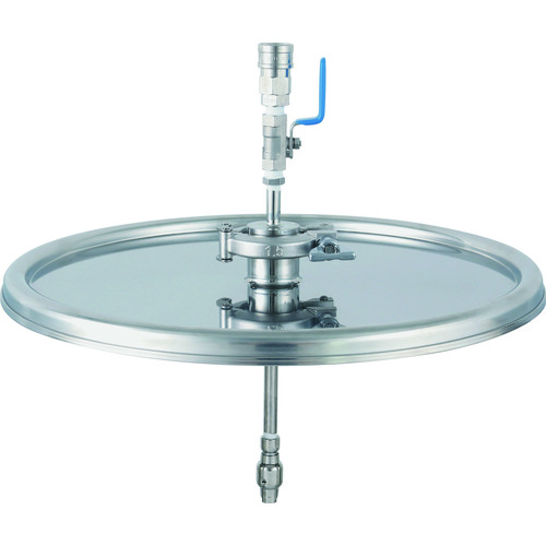 日東金属工業(株) 品番:MF-CN-565 日東 容器洗浄ノズル付蓋 565用【MF】 特長水圧によってシャワーノズルが回転し、容器内面を洗浄します。洗浄液を容器内面にしっかり当てられる、5~10rpm(0.3MPa時)の低速回転です。洗浄ノズルと蓋は分解・組立しやすいヘルール接続です。流入口はスムーズに着脱できるようカプラ(カプリング)になっています。【MF-CN】は、密閉蓋【MF】と洗浄
