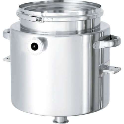 日東金属工業(株) 品番:HT-CTL-J-BRK-39 日東 ホッパー型ジャケット密閉容器 バンド式 ブラケット付 45L 特長架台や装置に取り付けできるブラケット付きのステンレス容器です。温調用のジャケット付きで、液等の排出に優れたホッパータイプです。作業に合わせて容器の取り付け・取り外しができ、装置の一部に組み込むことができます。水を流して内容物を保温・冷却できるジャケット(外槽)付きで