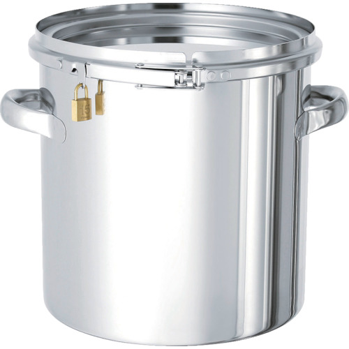 日東金属工業(株) 品番:CTLK-24 日東 ステンレスタンク 南京錠付き密閉タンク 10L 特長南京錠付なので、盗難防止・無断使用防止に役立ちます。レバーバンドの使用により、ワンタッチにて開閉可能です。内外面バフ研磨仕上げです。底面フラットタイプのため粉・液だまりがありません。フタをしたままで段積みが可能です。シリコンゴムパッキンを使用しています。用途液体・粉体などの保存。商品スペック仕様