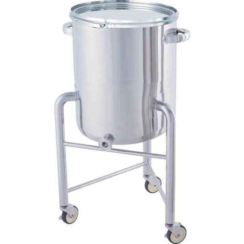 日東金属工業(株) 品番:KTTX-CTL-L-565H 日東 片テーパー急傾斜型密閉容器 脚付 バンド式 200L 特長容器の底が排出方向に傾斜したステンレス容器です。「排出の時短」平底の容器よりスムーズに内容物を次工程に排出できるよう、底面を排出方向に傾斜させました。また、当社従来品より傾斜をきつくすることでより排出効率を向上させています。高粘度の液体にも有効です。「洗浄の時短」排出後の残
