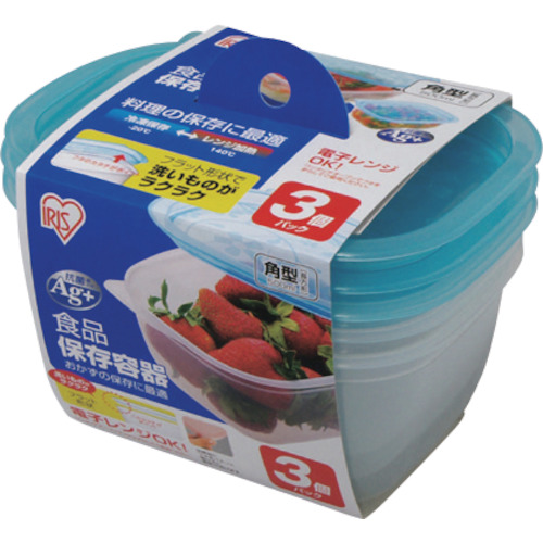 アイリスオーヤマ(株) SHY-K-500-3-BL IRIS 食品保存容器 角 500ml×3P ブルー