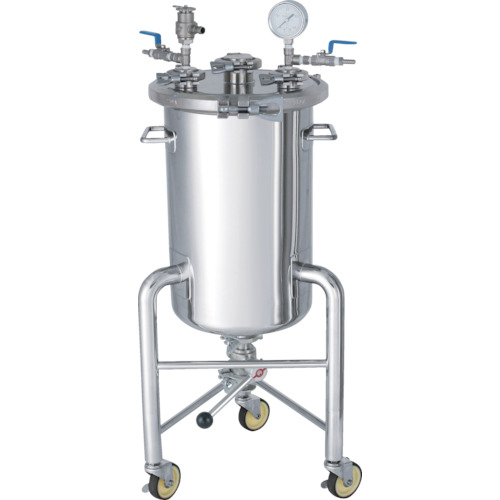 日東金属工業(株) 品番:PCN-F-L-10-UT 日東 SUSヘルールオープン加圧容器 脚付 加圧ユニット 10L 特長容器内の液体を圧送する際に必要な、基本アクセサリーが一緒になった、圧送ユニットです。開口部がへルールタイプの圧力容器です。口径と容器内径が同じストレートタイプでタンクごと移動できるキャスター脚付きです。オープン型の為、洗浄が容易に行えます。ご使用に合わせて、アクセサリーを