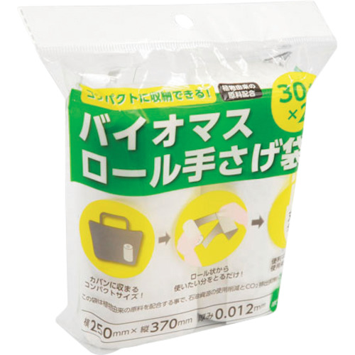 (株)折兼 品番:659616 パックスタイル バイオマスロール手さげ袋 乳白30枚×2巻 特長コンパクトに収納できるロール状のレジ袋です。1ロール30枚巻きでミシン目でカットして使用できます。約100×50mmのコンパクトさで、毎日の買い物などの持ち歩きに便利です。買い物などの使用後はゴミ袋として使用できます。車内用ゴミ袋、ペットのうんち処理袋等用途もいろいろです。強度に優れた丸底タイプです