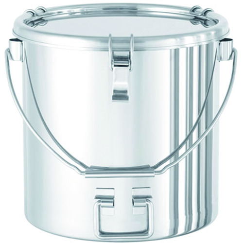 日東金属工業(株) 品番:CTBDF-PTFE-30 日東 吊り下げ式下部折りたたみ取っ手付密閉容器(クリップ式/PTFE) 20L 特長ツル(吊り下げ用の取っ手)の付いた丸型ステンレス容器です。中身を空ける際に下部の取っ手を掴むことで容器を楽に傾けられます。取っ手が折りたたみ式なので置いた時に幅を取りません。パッキン付きの密閉式で内容物の飛散を防止し、ホコリなどの混入を防ぎます。底の角は、汚