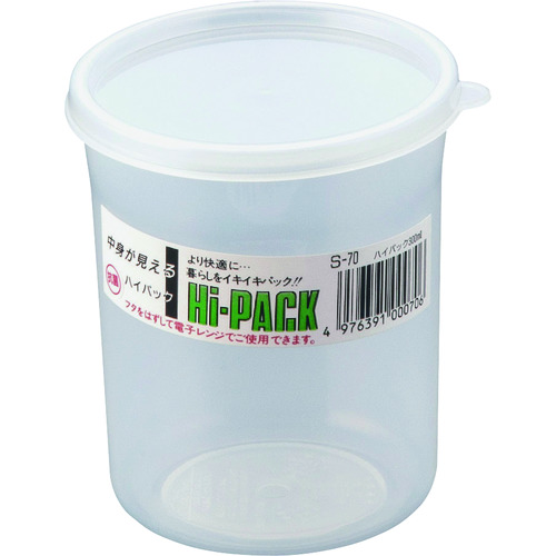 遠藤商事(株) 品番:AHI04070 TKG エンテック ハイパック 丸長型 S-70 特長ハイパックサイズが豊富で用途が広い、便利な保存容器ハイパックです。材質:本体ポリプロピレン本蓋ポリエチレン耐熱温度:120℃耐冷温度-20℃※抗菌※電子レンジ対応(フタをはずして電子レンジでご使用できます。)商品スペック仕様・規格メーカー品番:S-70直径×高さ:80×93mm容量:300cc材質本体