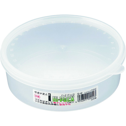 遠藤商事(株) 品番:AHI05042 TKG エンテック ハイパック 丸型 S-42 特長ハイパックサイズが豊富で用途が広い、便利な保存容器ハイパックです。材質:本体ポリプロピレン本蓋ポリエチレン耐熱温度:120℃耐冷温度-20℃※抗菌※電子レンジ対応(フタをはずして電子レンジでご使用できます。)商品スペック仕様・規格メーカー品番:S-42直径×高さ:157×52容量:730cc材質本体:ホ