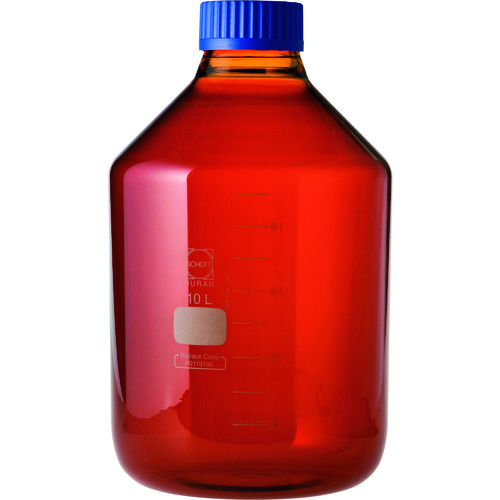 柴田科学(株) 品番:017250-110000 SIBATA ねじ口びん 10L GLS80 茶 青キャップ付 特長GLS-80ねじ規格で、キャップの開閉が素早くできます。ねじ口内径が約65mmと大口径になり、粉末・ペースト状・顆粒・液体などさまざまな試料の出し入れが、簡単にできます。大きめのスプーンやヘラ、ピンセット、漏斗も使用でき、洗浄も容易です。遮光を目的として茶染めにした、茶かっ色の