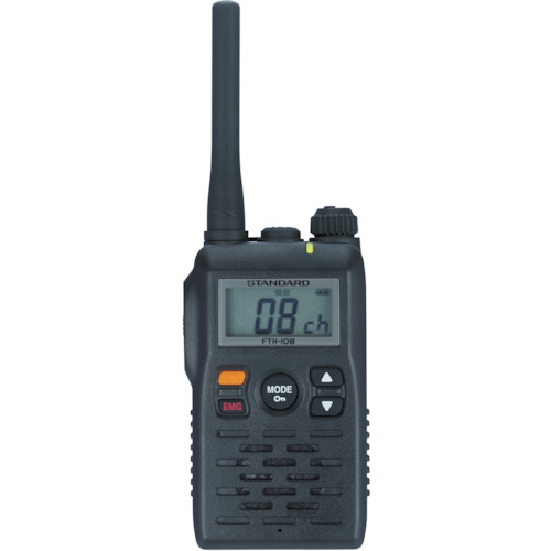 八重洲無線(株) 品番:FTH-108 スタンダード 特定小電力トランシーバー 特長緊急を報知するエマージェンシー(緊急音)機能を搭載しています。単3乾電池1本で約28時間使用可能な省エネ設計です。用途製造ラインなどでの多人数との連絡に最適。防災・安全管理等での緊急を要する連絡に最適。屋外の交通誘導や各種工事現場などに最適。商品スペック仕様・規格通話距離:200m(市街地)、約1km(郊外)交