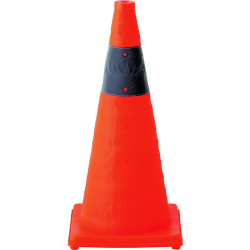 (株)日本緑十字社 116207 緑十字 伸縮式三角コーン 橙 伸縮コーン-YR(大) 高さ620mm(ベース295mm角) 反射材付