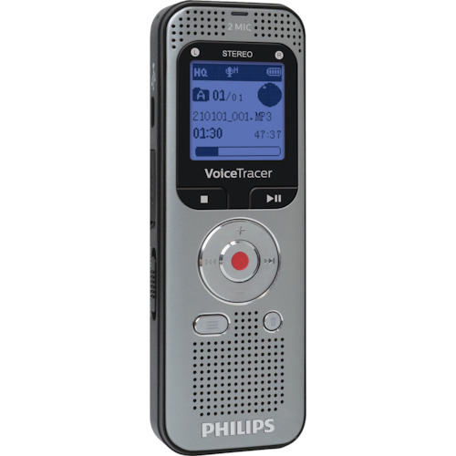 (株)グリーンクロス 品番:6300026647 グリーンクロス PHILIPS ICレコーダー DVT2000-SV 特長「ワンタッチ録音」を採用し、さりげない操作で録音ができます。また、特別なソフトウェアがなくてもUSB経由、もしくはmicroSDカードで簡単にファイル転送ができます。AMラジオ番組をFM受信・録音することも可能です。他、再生スピードの調整ができる早聞き/遅聞き機能、フレー