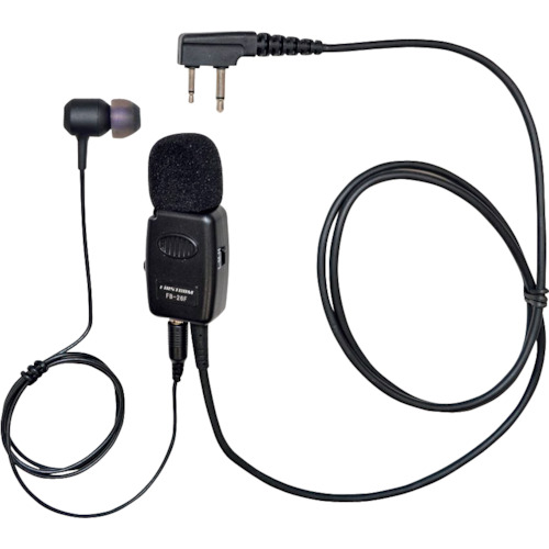 (株)エフ・アール・シー 品番:FB-26F F.R.C. タイピン型イヤホンマイク 特長トランシーバー専用の高機能タイピン型イヤホンマイクです。イヤホンはカナルタイプが付属しています。イヤホンは同梱のカナルタイプ以外に、耳掛けタイプなど5種類のオプション・イヤホン(別売)に付け替えての使用も可能です。PTT(送信)スイッチのロック機能を搭載しています。マイク感度は高・中・低の3段階調節が可能
