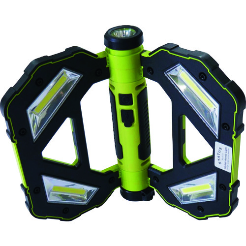 (株)グリーンクロス 品番:1135060020 グリーンクロス スタイリッシュハンディライト 特長懐中電灯として使う場合には20ルーメン、開いて使う場合には800ルーメンの明るさがあります。本体裏面にはマグネットが付いているので、シャッター、鉄柱、鉄柵、鉄板など、マグネットのつくものであれば何にでも貼り付けてご使用できます。吊り下げ用フックが内蔵されているので、に吊り下げてランタンのようにご