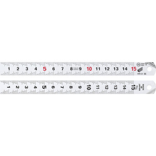 新潟精機(株) 品番:CU-15KD SK キャッチアップスケール快段目盛 15cm 特長最小単位の目盛が見やすい快段目盛です。JIS1級品です。片手でつまめて持ち上げやすいです。裏面は深さ測定でも見やすい縦快段目盛を採用しています(CU-15KD)。1mm単位の目盛が見やすい、階段状目盛です。数字が大きく見やすい繰り返し数字タイプです。用途長さの計測に。商品スペック仕様・規格連続追い数字タイ