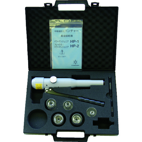 亀倉精機(株) 品番:HP-1 亀倉 パワーマンジュニア ポンプとシリンダーが一体化特長ポンプとシリンダが一体化しています。鉄、アルミ、ステンレスに使用します。用途制御盤、操作盤、ラック等に取り付けるスイッチやコネクタの取り付け穴、壁に電線や配線を通すための穴などさまざまな穴の加工用。商品スペック仕様・規格出力:44.1kN穴径(mm):10~80穴あけ最大能力(mm)鉄:t2.3×φ15穴あ