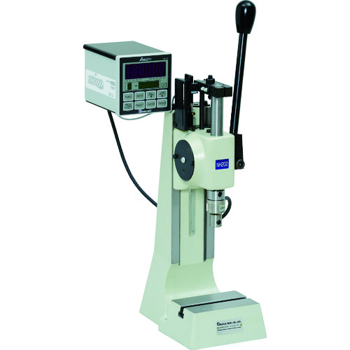 仲精機(株) 品番:NH202ZB1 ナカ ハンドプレス ラックピニオン式 特長ベアリング、シャフト、ピンなどの圧入、薄い金属板や細い棒材などの曲げ、切断、かしめ、薄い金属板、プラスティック材などに数字、マークなどのスタンプに適しています。主軸とギアをかみ合わせた方式のため、一定圧力で圧入・挿入作業に適しています。荷重指示計(自動回数カウント機能および結果判定LED付)付です。用途マークなどの
