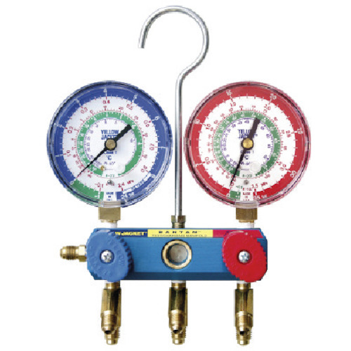 アサダ(株) JAN:4991756160215 アサダ R12等用バンタムマニホールド φ80mm BV付ホース 特長高品質ナイロンパッキン採用。気密性バツグン。スライド式でピストンの交換が簡単。サイトグラス内蔵で、冷媒の流動や充填・回収中の冷媒の状態の確認が可能。全ポートに100ミクロンメッシュフィルタ内蔵で、スラッジなどのゴミの浸入を防止。真空引きや冷媒の充填に使用できるムシ付アクセスポ