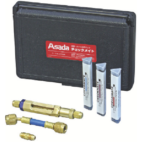 アサダ(株) 品番:RT700K アサダ チェックメイト 特長簡単で安価に、オイルの汚染度、冷媒中の水分・酸分の測定ができます。オイルテストは色の変化で合否の判断ができます。酸分・水分テストは、ppm単位で計測できます。用途冷凍・空調システム内のオイルの汚染度、冷媒中の酸分・水分の測定に。回収冷媒の再利用可否判断に。商品スペック仕様・規格アサダ チェックメイトオイルテスト合否判定:3段階の色表