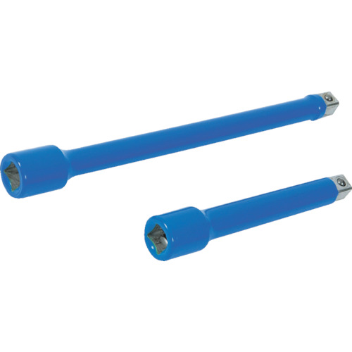 トップ工業(株) 品番:EX-4150Z TOP 絶縁エクステンションバー差込角12.7mm全長150mm 特長フッ素樹脂粉体静電塗装による薄膜絶縁コーティング工具です。コーティング膜厚は0.4~0.6ミリで2層になっており、一層が緑色、二層が青色。緑色が出たら使用中止サインでお知らせします。コーティング厚が薄いためかさばらず、外径寸法が既存製品より小さい事が最大の特長です。用途240V以下の