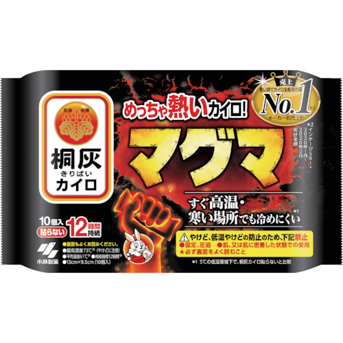 小林製薬バリューサポート(株) 品番:4901548601420 小林製薬 マグマ貼らない10個(カイロ) 特長すぐに高温になり、屋外で冷めにくい屋外専用の貼らないタイプのカイロです。冬場の屋外作業時やゴルフ、スポーツ観戦に適しています。商品スペック仕様・規格持続時間(時間):12最高温度(℃):73平均温度(℃):61タイプ:貼らない材質-質量・質量単位600g使用条件-注意事項高温になるカ