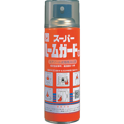 日本ドライケミカル(株) JAN:4944424100259 ドライケミカル スーパールームガード 特長オゾン層を守り、初期消火に有効な簡易消火具です。天ぷら鍋、ストーブ、くずかご、クッション、カーテンの火災の「鑑定基準」家庭内5点の安全消火適合消火具です。用途適用火災:てんぷら火災・くずかご火災・カーテン火災・クッション火災・ストーブ火災。事務所等商品スペック仕様・規格蓄圧式耐用年数:3年ス