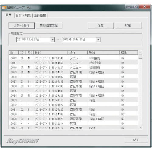 日本アイ・エス・ケイ(株) RSF-20 キング 指紋認証式用 履歴閲覧ソフト
