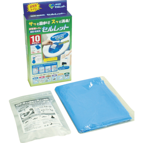 平井工具(株) 品番:870240 BROWN 非常用トイレ セルレット 10回分セット 特長災害時、断水時などに水を使わない非常用トイレです。袋のまま入れるだけで、さっと固まり、すっと消臭できます。未開封の状態で約7年の長期保存が可能です。用途災害時、断水時などに水を使わない非常用トイレです。汚物袋をセットし排泄後に凝固剤を袋のまま入れるだけです。消臭性に優れたヤシ殻活性炭入りなので素早く固