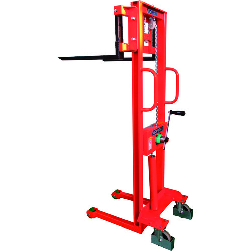京町産業車輌(株) 品番:HL350 KSK ハンドリフト 特長リンクチェーンを使用し、メンテナンスも簡単です。用途荷物の上げ下げや運搬に。商品スペック仕様・規格手動走行式均等荷重(kg):350荷重中心距離(mm):300フォーク寸法(mm)幅×長さ:60×600フォーク寸法(mm)スライド外幅:140~630全高(mm):1910フォーク高さ(mm):90~1500ハンドル回転数(回):6