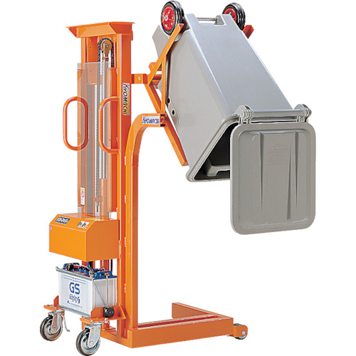 京町産業車輌(株) 品番:LMS150-20C KSK リフトマイティ横反転 特長容器をリフターの横方向に反転することができます。ボタンを押すだけで昇降する電動昇降リフトです。用途容器の搬送、内容物の投入作業に商品スペック仕様・規格昇降反転方式:電動式手動走行式適応容器:セキスイ110Lコンテナまたはサンコー130Lコンテナ用(ご購入時にご指定下さい)均等荷重(kg):150全幅(mm):68