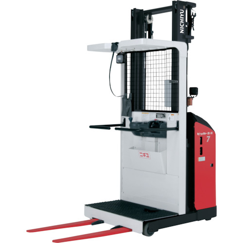 三菱ロジスネクスト(株) 品番:RBC7D-70 三菱ロジスネクスト ピッキングリフト ピッカーエース(ドライブフロントタイプ) 特長高層ラックにおけるピッキング作業に効果を発揮するピッキングリフトです。運転操作部分が荷台とともに昇降するため、ラックから直接ピッキング作業を行う事が可能です。様々なウェアハウス物流現場でのピッキングに合わせて、作業性のよいドライブフロントタイプ・運転性のよいフォ