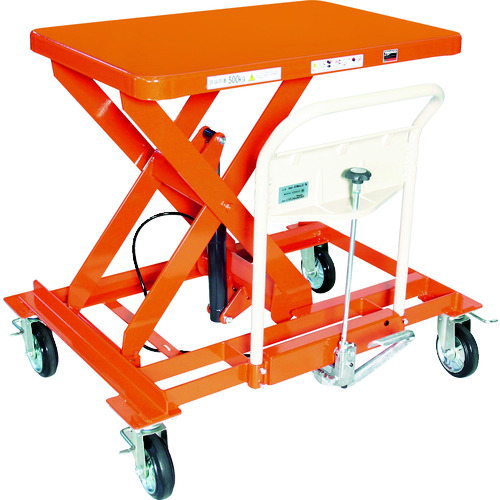 トラスコ中山(株) 品番:HLFA-S500LLS-B TRUSCO ハンドリフター サイドハンドル 500kg 4輪自在 早送り無し 特長荷物の重さによって上昇ピッチが自動的に切り替わる油圧式の早送り装置付です。自在車輪には安全ブレーキを装備しています。高耐久性の油圧ポンプに強靭なシリンダを装備し、安全で快適な昇降を実現します。高剛性のフレームに油圧ポンプ、シリンダをコンパクトにまとめた親切