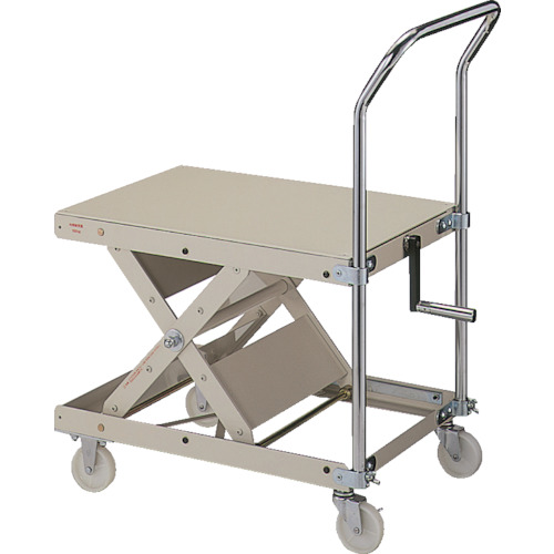 丸善精工(株) 品番:LH-35S-2 丸善化工 ローハイシステム リフター スクリュー式 スチール製 移動式 押手付 特長昇降機構はスクリュー式(台形ねじ使用)のため、油圧式のようなテーブル面の自然下降はありません。昇降式・簡易リフターです。用途昇降式簡易補助作業台。昇降式簡易補助リフター。商品スペック仕様・規格昇降方式・スクリュー式自在キャスター、固定ストッパー付キャスター各2個均等荷重(
