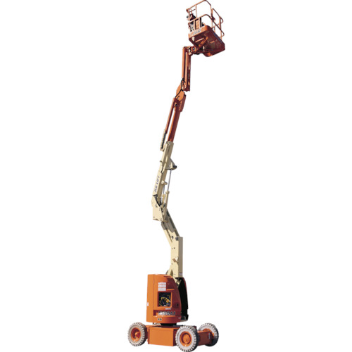 長谷川工業(株) 品番:E300AJP ハセガワ ブームリフト 9.14m 特長ブームが5箇所屈折しバケット部が140°旋回してかゆいところに手が届く自走式高所作業車。ブームを格納すれば狭い通路も通れます。用途工場・商業ビル内のメンテナンス、工場の組立て作業、映画・テレビなどの撮影現場で活躍します。商品スペック仕様・規格走行速度(km)/h):4.8登坂能力(°):14動力:8