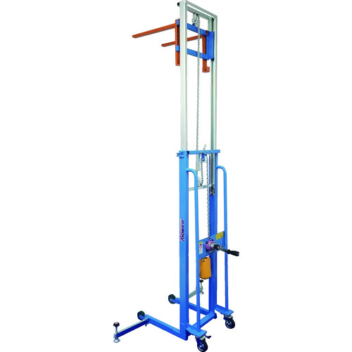 京町産業車輌(株) 品番:CLH100 KSK キャリーリフトハイ 特長低全高・高揚程を実現した手巻式多段リフトです。用途ダクト、ルームクーラーなどの取り付け。作業家具および装飾品の壁面取り付け。倉庫内での荷物の積み上げ。商品スペック仕様・規格手動走行式フォーク、アウトリガー:脱着式ブレーキ機構内蔵均等荷重(kg):100荷重中心距離(mm):250フォーク寸法(mm)幅×長さ:40×500フ