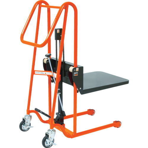 トラスコ中山(株) 品番:TBET-200TL-12 TRUSCO ニューライトリフター 200kg テーブル式 H80-1205 特長テーブル式ですので、小物の運搬に適している他、最低位が低いのでボックスパレットなどをすくうことが可能です。軽量化とシンプルなデザインで操作性が優れています。過負荷防止バルブ付です。後輪自在車輪には、両輪ブレーキ付ゴム車を採用しています。用途荷物の昇降や運搬。商
