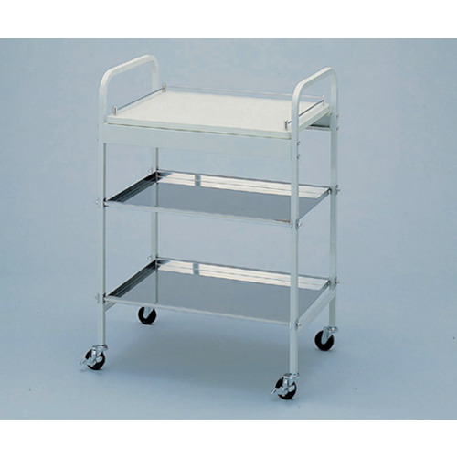 アズワン(株) 品番:3-406-01 AS ハンディキャリーST-3型 特長天板はユニット実験台、中段・下段は薬品や小物のトレーとして利用できます(転落防止枠付き)。棚板は取り外し自在で、そのままトレーとして使用できます。商品スペック仕様・規格材質:天板/メラミン合板、棚/ステンレス(SUS304)トレー内寸法:606×396×20mm耐荷重:天板/20kg、棚/20kg(総耐荷重約40kg