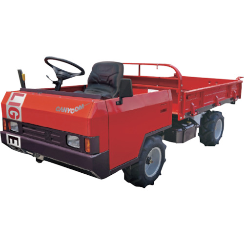 (株)筑水キャニコム 品番:ELL803PWV1 CANYCOM 小型特殊自動車“ライガー” 特長前輪操舵方式+胴体屈折操舵方式により抜群の旋回性能を発揮します。運転席部と荷台とが路面の状況で別々に反応するセンターローリング機構を採用しているので、凹凸の路面でもタイヤの浮き上がりがありません。AWD(4輪駆動)だからスリップ知らずです。4輪駆動と2輪駆動を状況により切り替えられるパートタイム式
