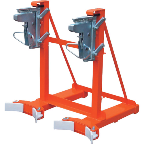 (株)大阪タイユー 品番:CA-N2-S-TK タイユー カムオートCA-N2-S高首型 特長チャック部が首を振る(左右に約50°)のでドラム缶をより簡単につかめます。全高サイズの高いタイプです。フォークリフトのマストの高さが抑えられますので、上限のある場所(コンテナ内など)で有効にお使いいただけます。用途200L鋼製ドラム用。商品スペック仕様・規格首振式搬送本数(本):2フォークリフ