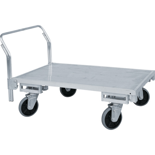 ハラックス(株) 品番:FT-1250-200HJ4 HARAX フラッティ 特長標準で片側ハンドル仕様ですが、別売部品のハンドル(FT-RH800)、支柱パイプ(FT-AP52)取付で用途に応じて様々な組み合せができます。4輪が全て自在ですから狭い場所でも旋回を楽におこなえます。用途荷物の運搬やピッキングカートに適しています。商品スペック仕様・規格組立式均等荷重(kg):350長さ(mm):