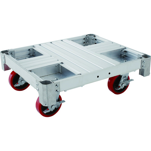 長谷川工業(株) 品番:NAC4-0765 ハセガワ アルミ運搬車 イットン台車ミニ 驚きの1トン耐久!特長耐久性に優れるシンプルな構造の軽量アルミ台車です。荷崩れ防止用に単管パイプ(48.6mm)を四隅に差し込める差し込み口付です。部材の交換・修理も可能です。四隅にキャスターがはまる構造でスタッキング可能です。アルミ製の軽量台車です。商品スペック仕様・規格完成品ブレーキ付キャスター全輪自在式