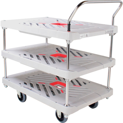 花岡車輛(株) 品番:XA-BT3-AC ダンディ ダンディXシリーズ タイプXA 3段テーブル片ハンドル式 抗ウイルスハンドル仕様 W935×D605 特長実用性・強度・軽量性を究極まで追い求めつつ、気高さを持った美しいフォルムの台車です。ものに合わせて積載量を選べる多段台車の三段式です。高さが低いものを数多く置く作業に便利です。荷台は肉抜きのクロスメッシュになっており、従来の約15%軽量化