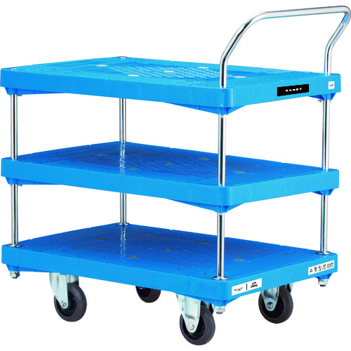 花岡車輛(株) PA-BT3-GS ダンディ プラスチック台車 ダンディPシリーズ タイプPA 3段テーブル片ハンドル式 サイレントキャスター仕様 W905×D605