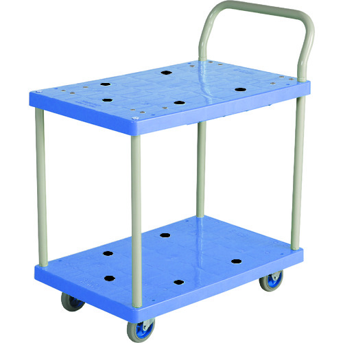 金沢車輛(株) 品番:NP-104 金沢 小型樹脂台車 2段式 特長デッキは樹脂製のため錆びる心配がありません。ハンドルはより強度の強い固定式です。ハンドルの塗装は錆にも強い粉体塗装仕上げです。ピッキング作業や仕分けにも便利な2段タイプです。安全・安心・高品質の純日本製です。用途運搬用に。商品スペック仕様・規格2段式均等荷重(kg):150騒音値(dB):46色:ブルー長さ(mm):750幅(