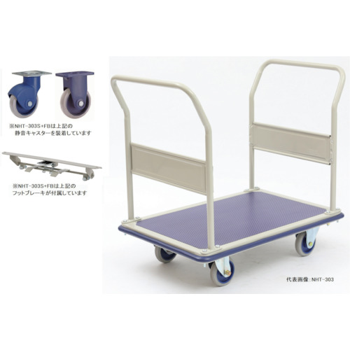 金沢車輛(株) NHT-303S FB 金沢 大型静音スチール台車(両ハンドル固定式)フットブレーキ付