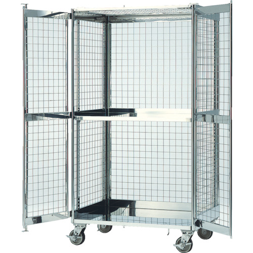 (株)テックサス 品番:SEC-1D テックサス 折りたたみ式ステンレスセキュリティカート 950x650 特長天板、側扉ともステンレスメッシュ(50mm×50mm)で、施錠することで管理者以外の接触ができません。未使用時には簡単に折りたたみができ省スペースに収納できます。25mmピッチで中棚(オプション)が取り付け可能、だから保管スペースに無駄がでません。用途製薬・化学・食品・医療分野での保