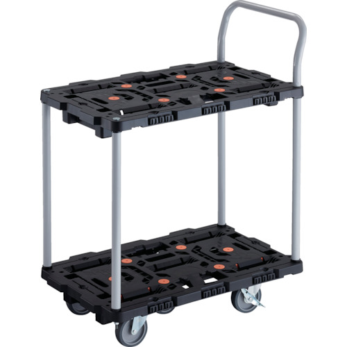 トラスコ中山(株) BT724J5S2-E100 TRUSCO 連結式樹脂製2段台車 ビートル 700X450 自在5輪 内2輪ストッパー付 ハンドル付
